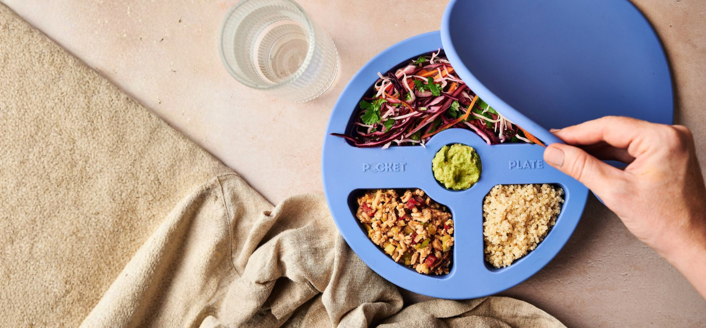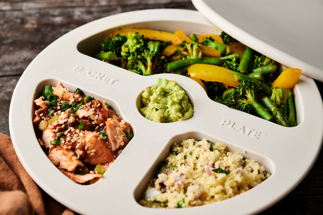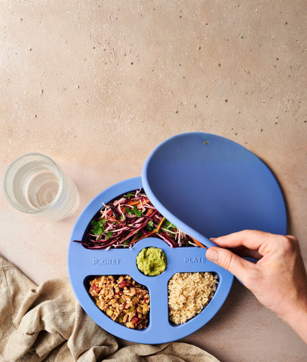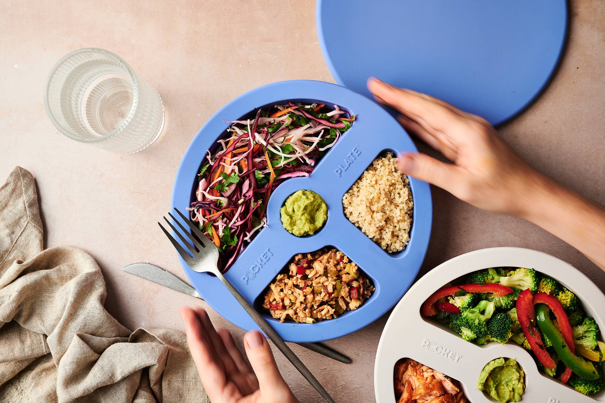 - Pocket Plate acts as a visual guide to help create balanced meals, no measuring, weighing, or counting required. The pockets train your eyes to create balanced portions.